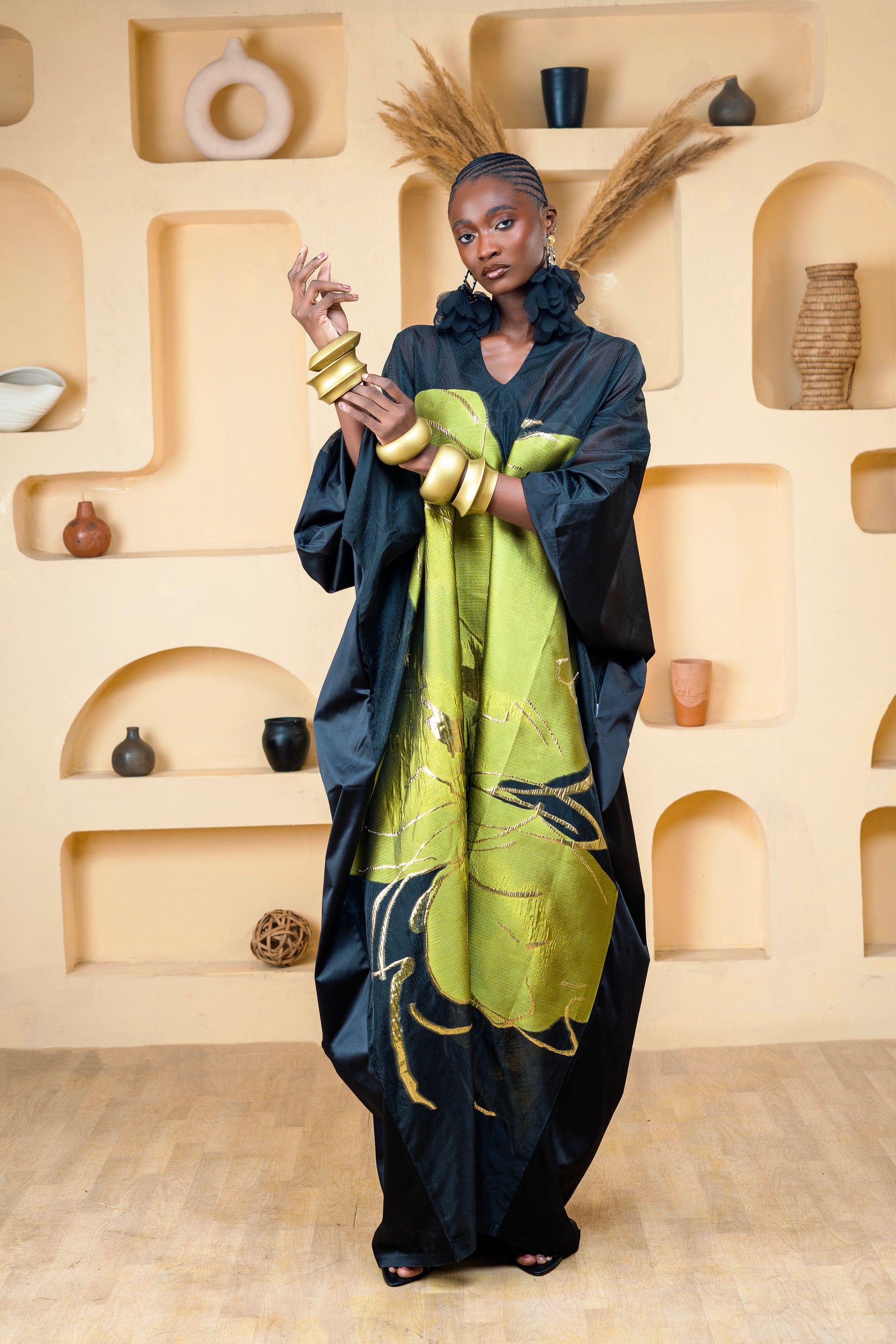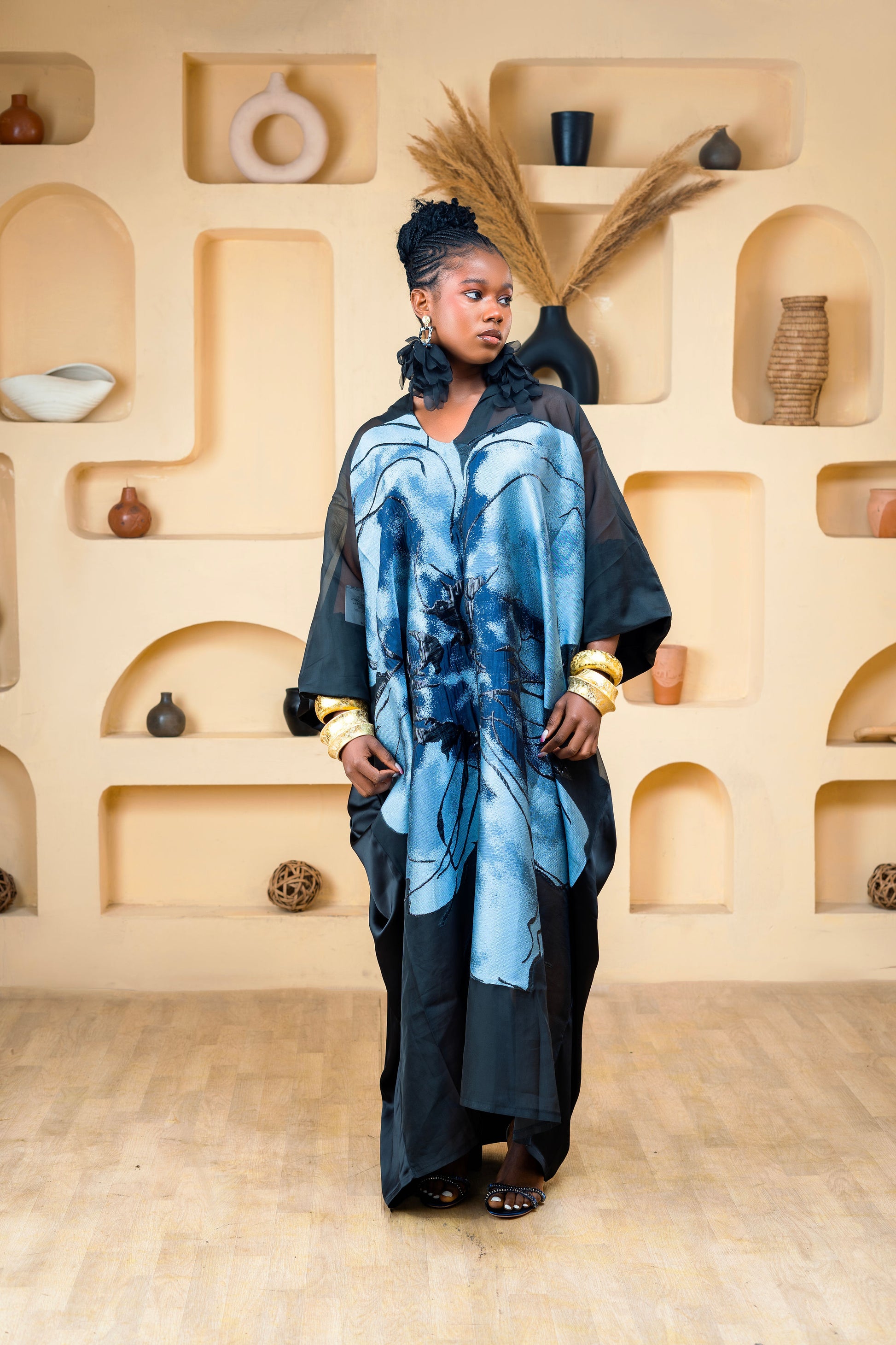 Make a bold statement in this Exaggerated Flower Kaftan Maxi by Sista by Eyoro. Designed with a stunning oversized floral detail at the front, this flowing silhouette blends elegance with artistry. Perfect for special occasions, it’s a show-stopping piece that embodies effortless glamour.