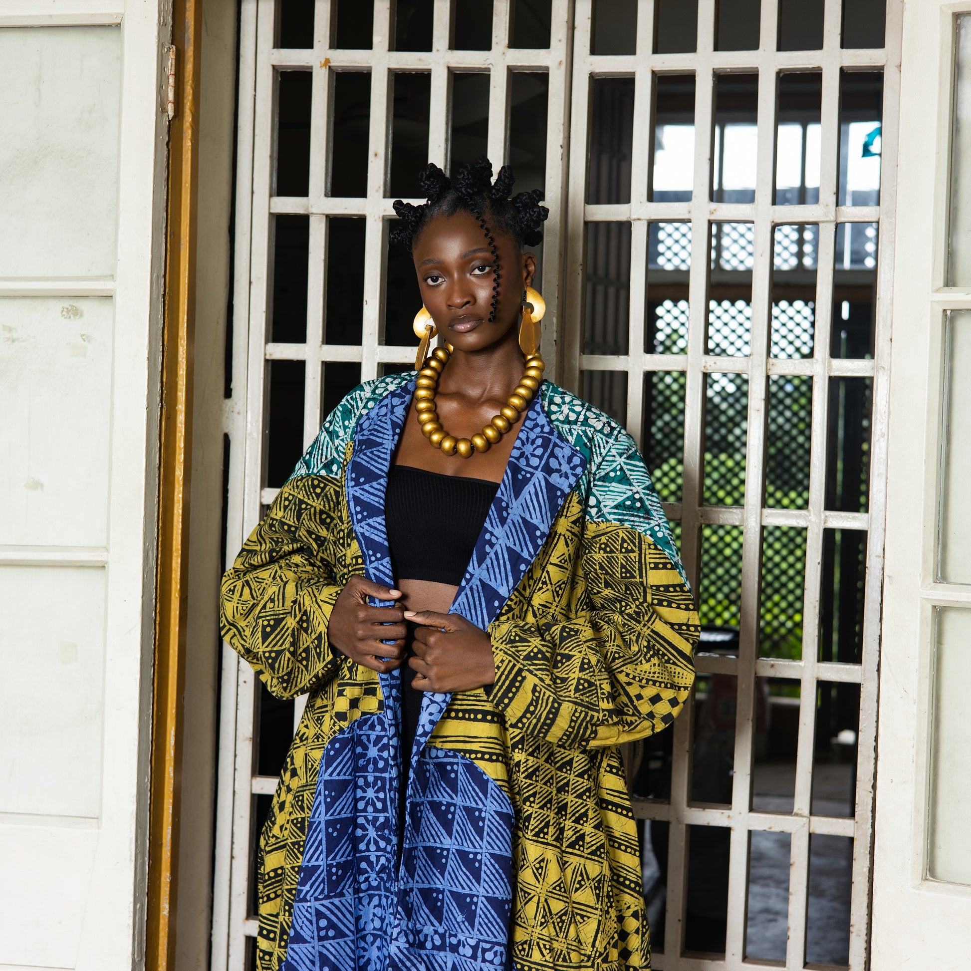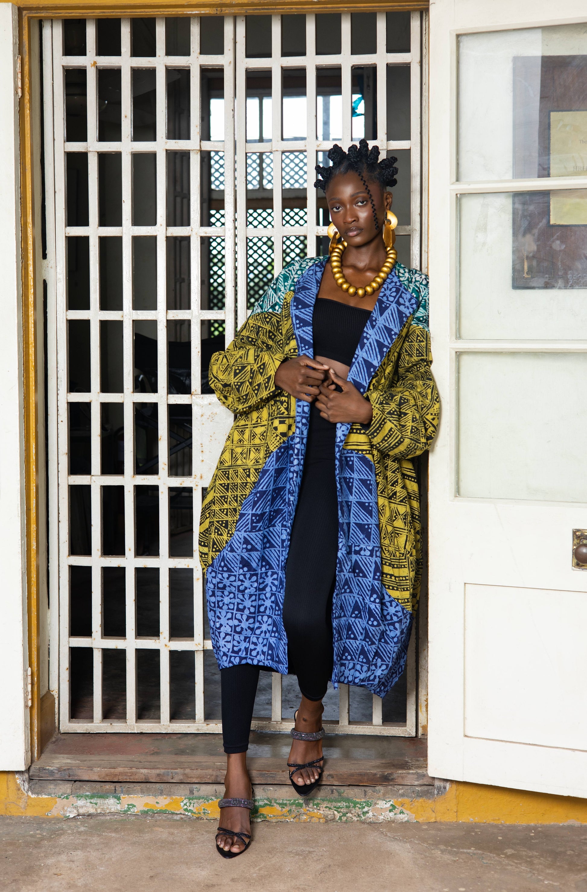 The Ladymaker Cocoon jackets are textiles in poetry. Each cocoon is handmade with a blend of hand-dyed Adire materials that is sure to help you make a statement every time you wear them. The Field Cocoon silhouette reads like an artistic mural unfurling around the body.