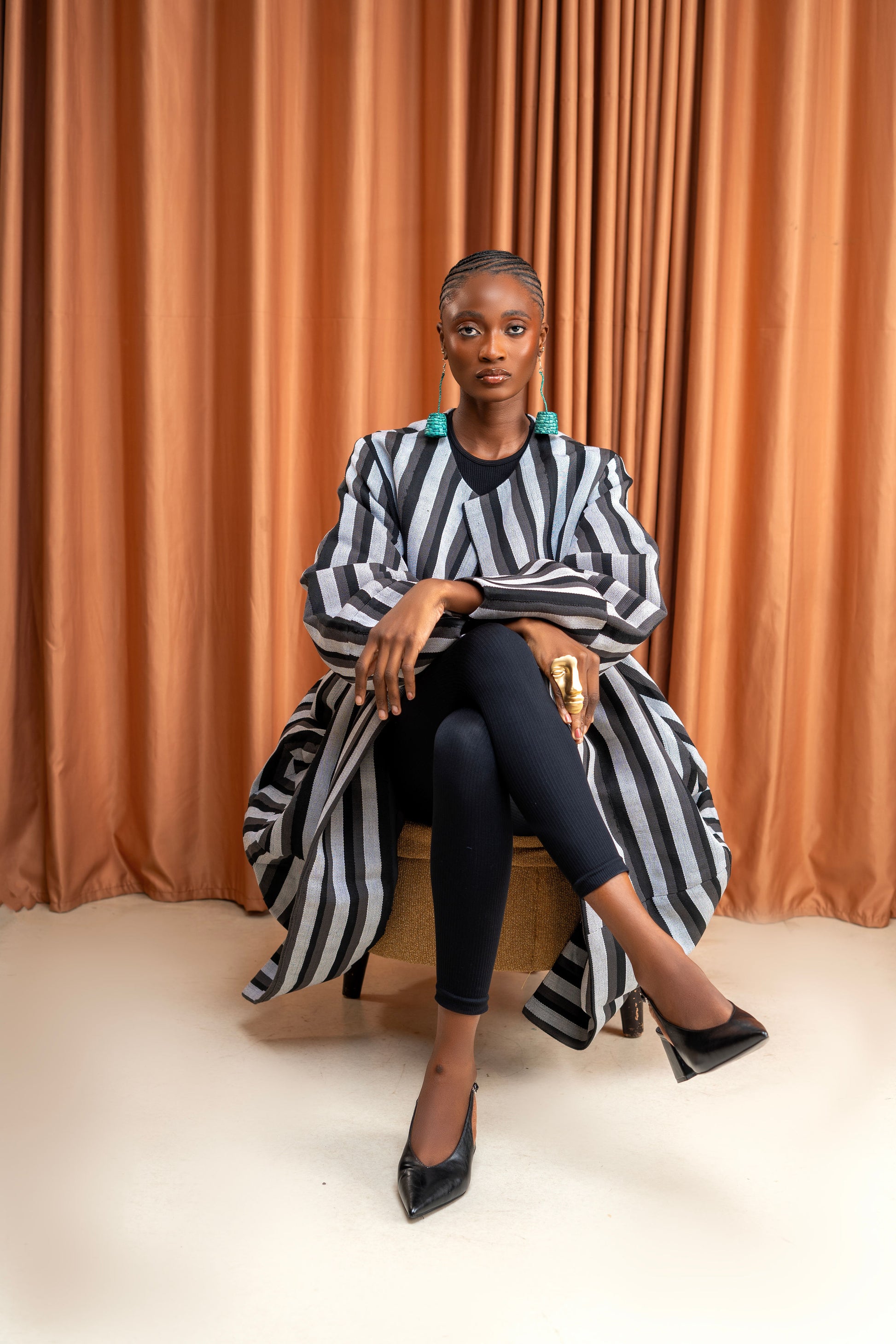 The Ladymaker Cocoon jackets are textiles in poetry. These vintage cocoons are handmade with a blend of Aso oke materials that is sure to help you make a statement every time you wear them. The Vintage Cocoon silhouette reads like an artistic mural unfurling around the body.